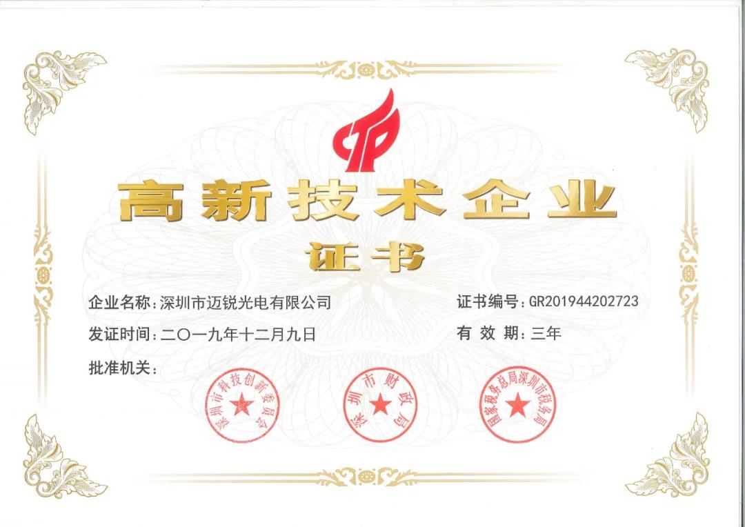 近日,公司也收到了由深圳市科技創(chuàng)新委員會、深圳市財政局、國家稅務(wù)總局深圳市稅務(wù)局聯(lián)合頒發(fā)的“高新技術(shù)企業(yè)”認定證書。