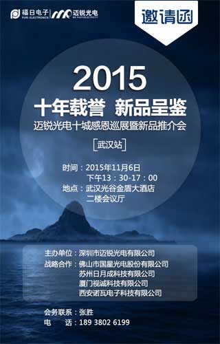 懷念往日時光,續(xù)寫明日輝煌。本場武漢站巡展,邁銳光電會繼續(xù)把精彩帶給華中地區(qū)的朋友們!11月6日(本周五)13:30,邁銳光電將在武漢光谷金盾大酒店等候,歡迎各位朋友蒞臨!