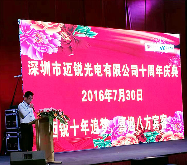 2016年7月30日,深圳市邁銳光電有限公司(以下簡稱邁銳光電)內(nèi)外鮮花燦漫、彩旗招展、氣球高懸,迎來了公司十周年華誕。為了感謝新老客戶的支持,在惠州皇冠假日酒店舉行了一場慶典活動,公司全體領(lǐng)導(dǎo)、客戶與合作伙伴齊聚一堂,共赴繁花似錦的十年之約。