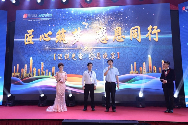 發(fā)布會后感恩晚宴開場,充滿異域風情的舞蹈、生動精彩的沙畫表演、動感十足的3D人屏互動秀等精彩表演,現(xiàn)場氣氛空前熱烈,歡呼不斷。邁銳光電與在場的所有來賓舉杯共慶,卞董和陳總的精彩祝詞,更是說出了每一位邁銳人的心聲和愿望,讓我們對邁銳光電的未來更加充滿信心和動力。