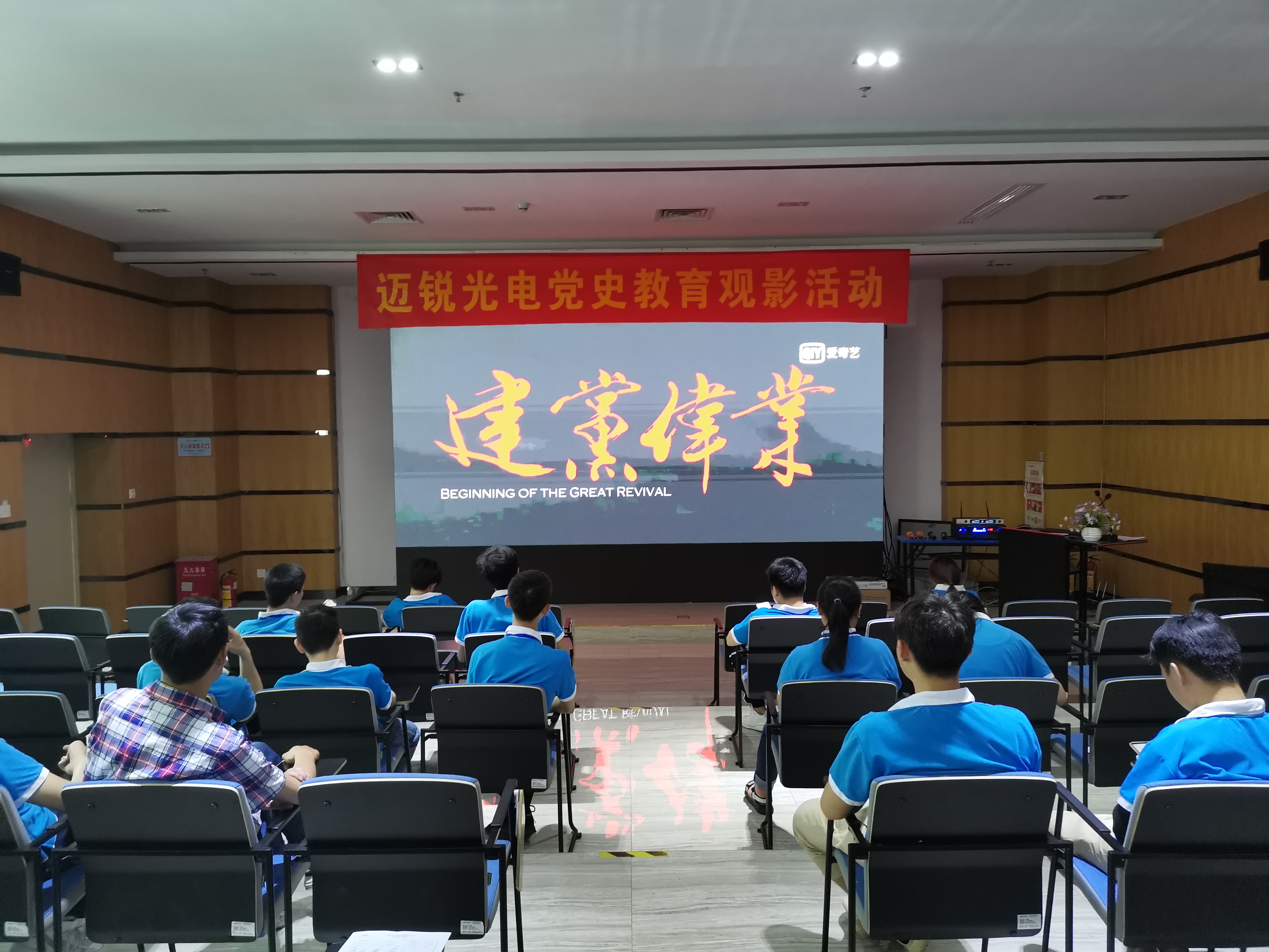 在建黨100周年即將來臨之際,為豐富公司員工的文化生活,并加強對全廠黨員的學習培訓,激發(fā)大家的民族榮譽感及愛國熱情,邁銳黨支部與行政部于5月共同組織公司全體員工分批觀看黨史教育影片——《建黨偉業(yè)》。以憶崢嶸歲月,溫百年風華。