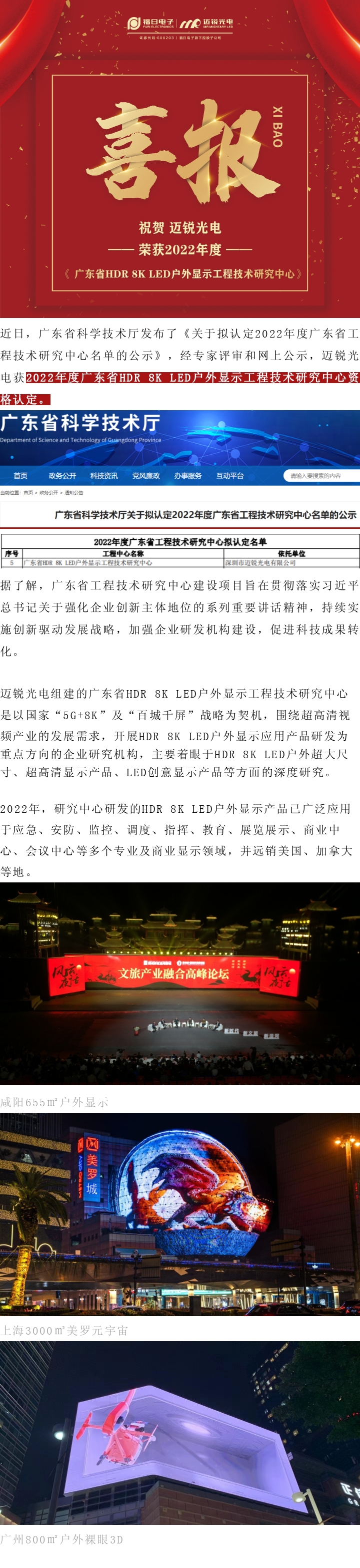 省級認(rèn)定!邁銳光電獲廣東省HDR 8K LED戶外顯示工程技術(shù)研究中心資格認(rèn)定