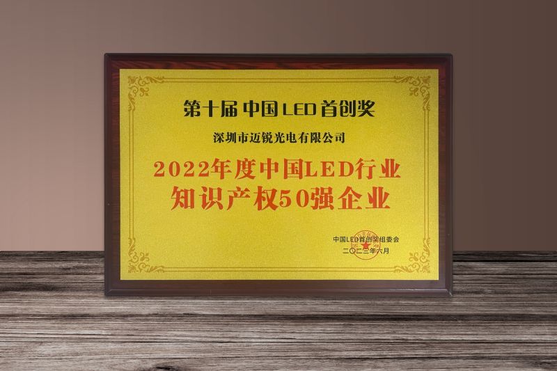 6月9日,以“開啟中國LED高質(zhì)量發(fā)展黃金新十年”為主題的第十屆中國LED首創(chuàng)獎(jiǎng)?lì)C獎(jiǎng)典禮在廣州朗豪酒店舉行。頒獎(jiǎng)典禮上,深圳市邁銳光電有限公司入圍2022年度中國LED行業(yè)知識(shí)產(chǎn)權(quán)50強(qiáng)榜單。